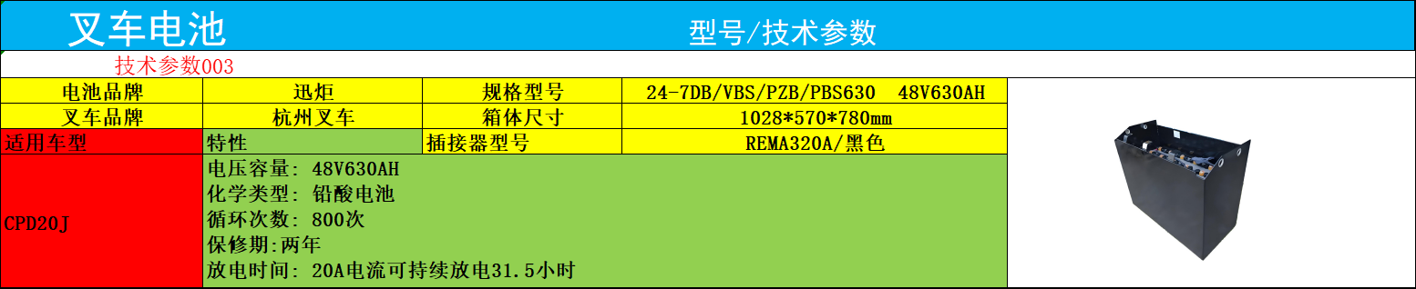 杭州叉車電瓶CPD20 迅炬24-7VBS630 電動(dòng)搬運(yùn)車電瓶48V630AH廠家代理