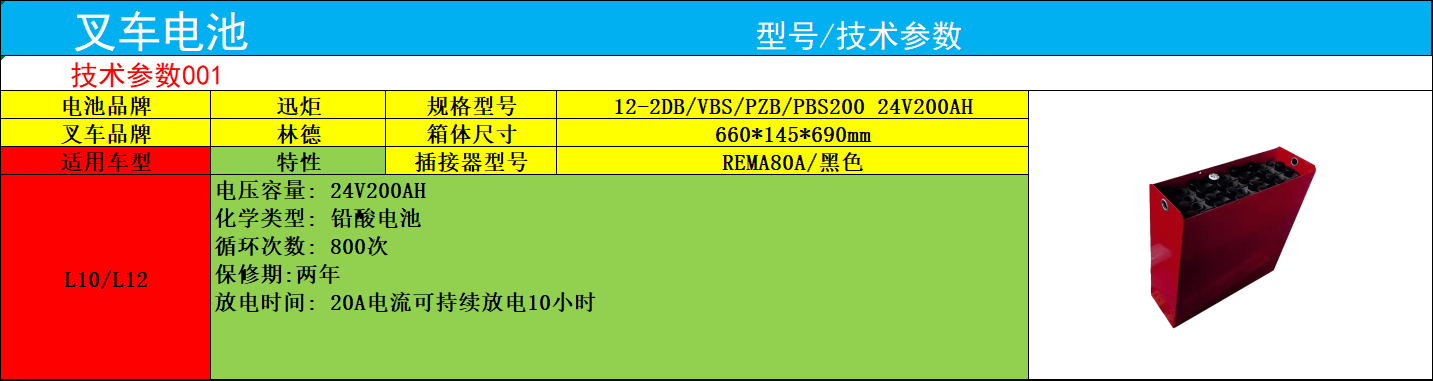 林德叉車電瓶L10 迅炬12-2VBS200電動搬運托盤車蓄電池24V200AH廠家