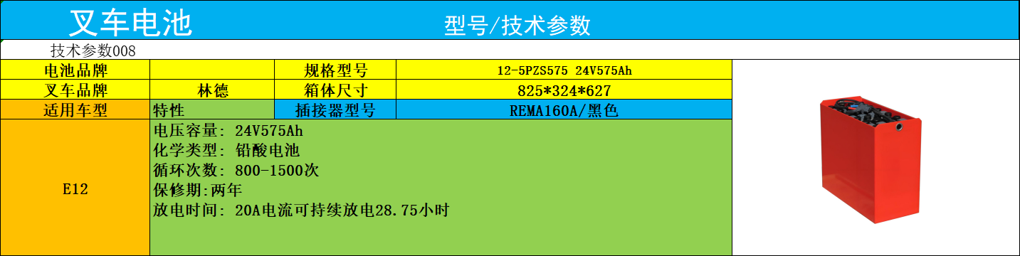 林德叉車電瓶E12 迅炬12-5PZS575 linde叉車鋰電池24V575AH價格參數(shù)