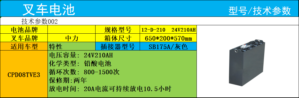 迅炬12-D-210動力鉛酸電池組(適配中力CPD08TVE3叉車)簡介